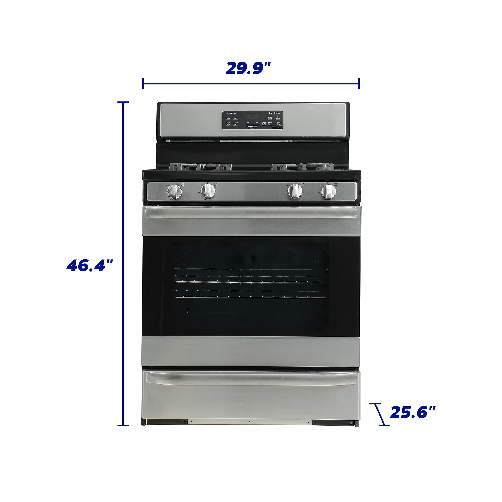Element's 30” Gas Range delivers the ideal blend of functionality and style to your kitchen. This range has 5.2 cu ft of oven capacity for baking multiple dishes at once. It features 4-burners with cast-iron grates so you can enjoy excellent cooking results, whether you're cooking weeknight dinner or entertaining a crowd. Don’t miss getting your dish started with our Delay Time feature for the bake or broil setting. It is also equipped with a powerful vent fan that efficiently removes cooking odors, steam, and smoke from your kitchen for a safer cooking environment. With all the essential features for everyday cooking and baking, Element's Gas Range is the perfect choice for your kitchen. Bring it home.