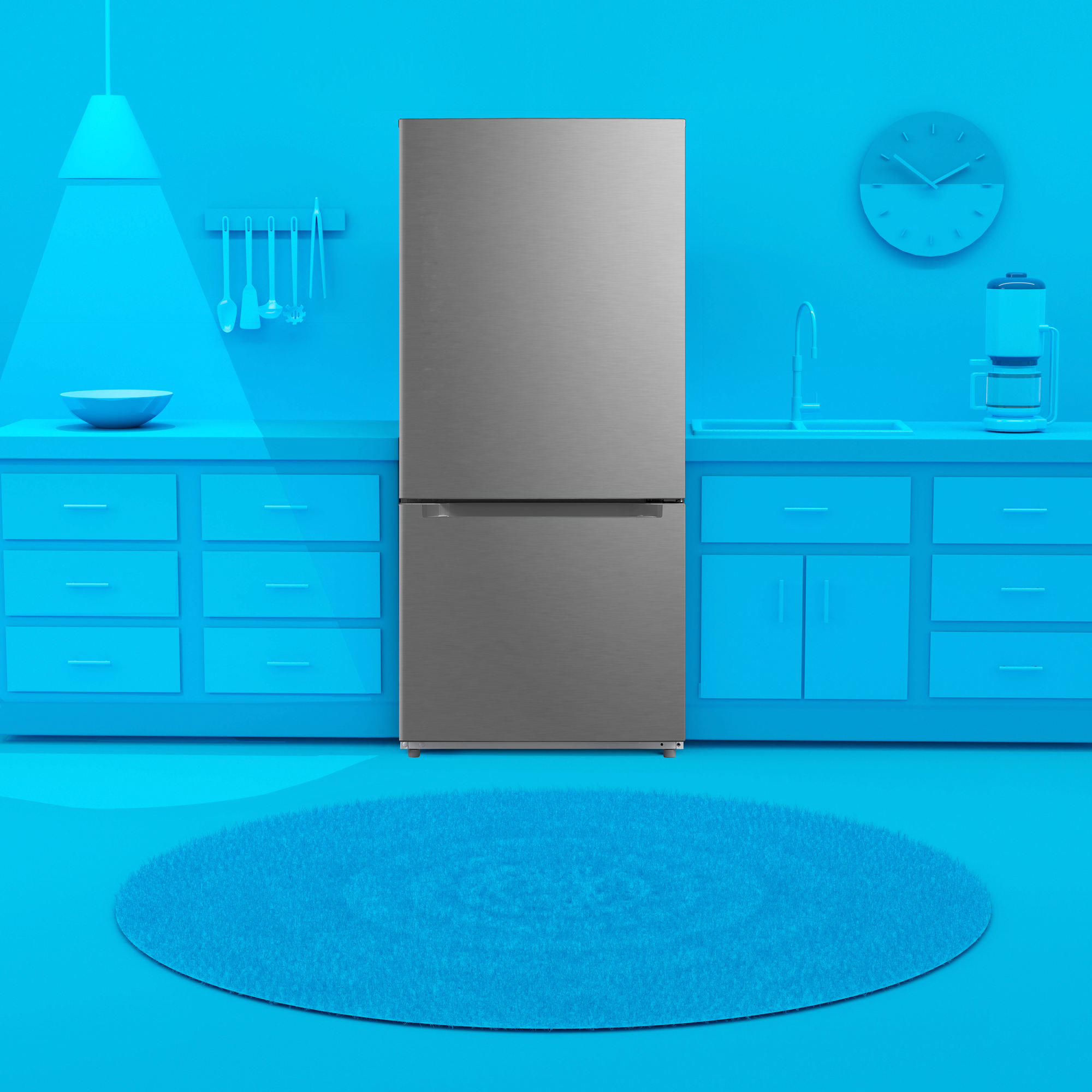 Element’s 18.7 cu. ft. Bottom Freezer Refrigerator is perfect for storing your fresh and frozen foods. The bottom freezer keeps the refrigerator closer to eye level, so it’s easy to find and grab your family’s food staples, like milk, butter, and eggs. Two full-width adjustable glass shelves make it easy to store large or small containers. Flexible door storage keeps your gallon-sized drinks within reach. Both crisper drawers have humidity control to help keep your fruit, vegetables, and leafy greens delicious and ripe. Easily adjust the humidity control setting for maximum freshness. LED interior lights emit minimal heat to help you conserve energy while grabbing a late-night snack. Element’s bottom freezer refrigerator is ENERGY STAR® certified, lessening energy usage while also being more eco-friendly.Equipped with Multi AirFlow technology, Element's 18.7 cu. ft. refrigerator maintains optimal humidity and airflow, so your food will stay fresher longer. The bottom freezer features a no-frost system, meaning your food will never frost over. Plus, sliding baskets give you easy access to your frozen goodies. The refrigerator door is reversible to fit your kitchen layout best, and the recessed handle creates a modern look while also saving space. The logo-less exterior and stainless steel finish allow it to blend with your current appliances seamlessly. Bring it home.