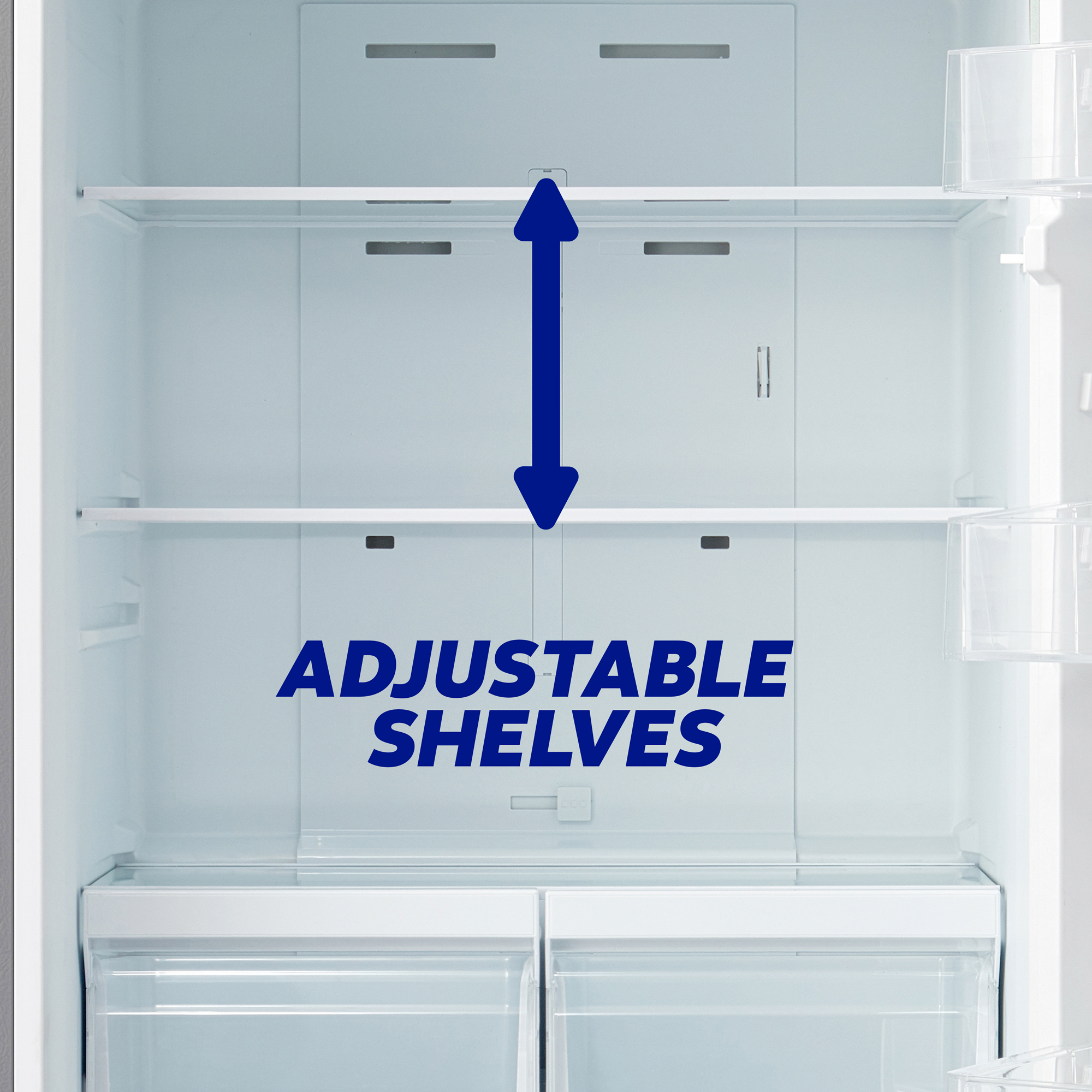 - ADJUSTABLE SHELVES - Adjustable glass shelves provide flexible, customizable, and ergonomic storage options. You can keep your shelves flat across the unit or stagger them as needed for tall (or short) items. Being able to remove shelves also makes it easy to keep your fridge clean.