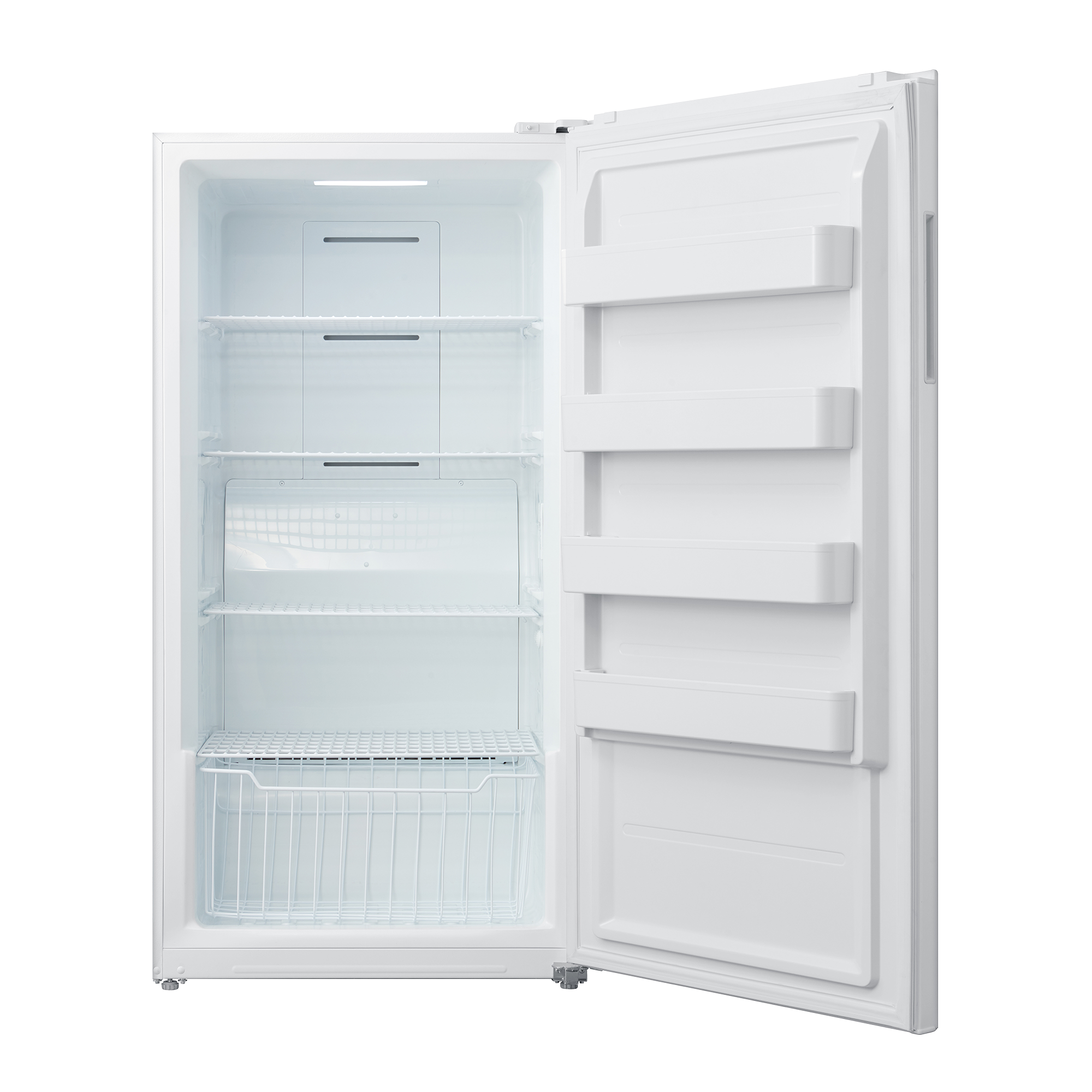 Element's 17 cu. ft. Upright Freezer gives you more space for all of your frozen favorites. It’s perfect for your garage, basement, kitchen, utility room, or even man cave — wherever you need easy access to your favorite frozen foods. With four adjustable shelves, you can customize its storage space to fit large or small containers easily. It can be converted from a freezer to a refrigerator with a simple electronic control. Plus, it's garage ready, making it perfect for storing popsicles in the summer.The logo-less exterior and white finish on Element’s 17 cu. ft. upright freezer allow it to match any space seamlessly. It features an interior light for grabbing a late-night snack. Element’s upright freezer uses a no-frost system, so your food never frosts over. This reduces the chance for odors and freezer burn that can affect the taste of your food. It comes Department of Energy certified to keep your electricity bills down. Bring it home.