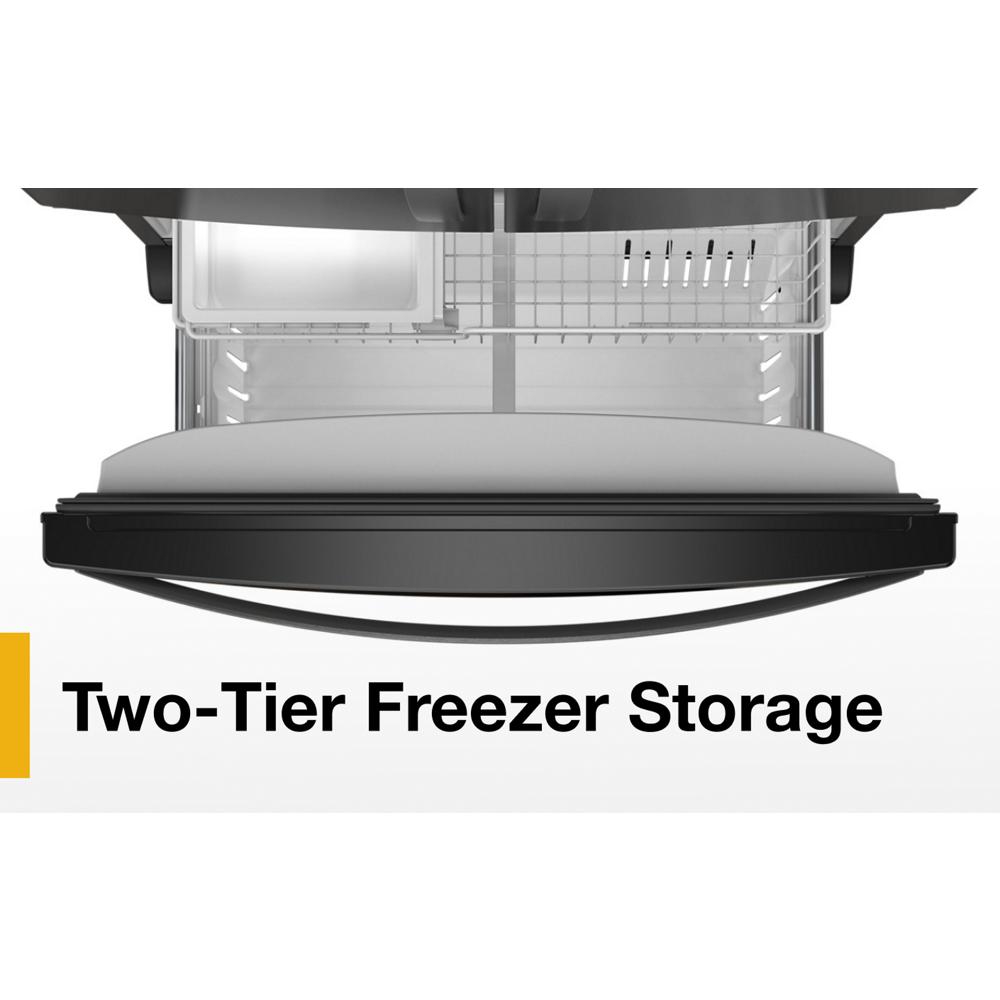 • Easily organize frozen favorites with two tiers of storage, including two sliding bins.