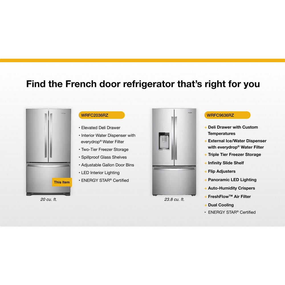 This French Door refrigerator with an internal water dispenser gives you the storage you need with the flexibility you want. With features like an Elevated Deli Drawer, spend less time looking and more time enjoying your deli essentials. The Interior Water Dispenser with Whirlpool® Water Filtration offers on-demand filtration so even clean water is easy to find. Get that perfect built-in look while keeping everyday items in sight thanks to Counter Depth Design with Easy-Reach Shelves.