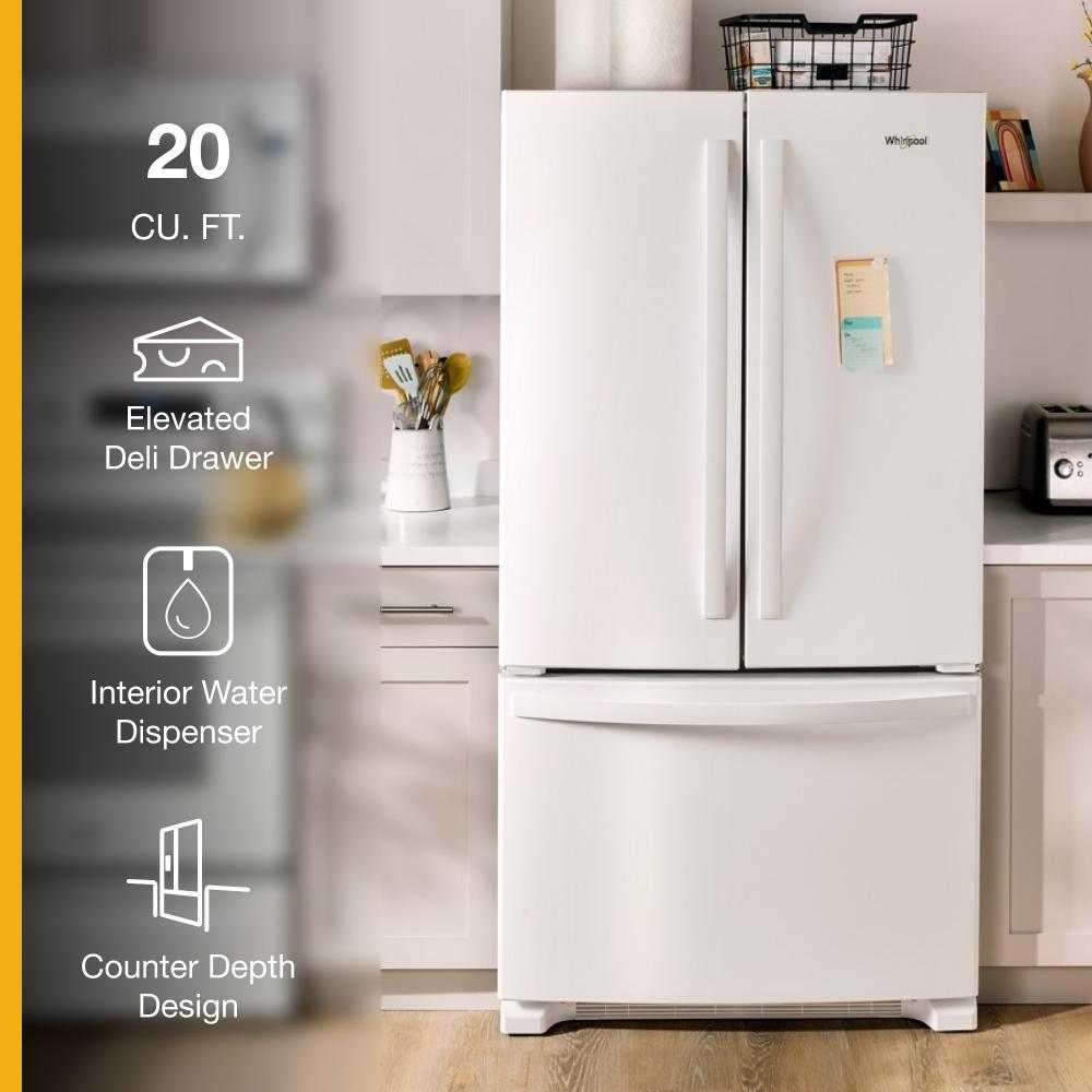 This French Door refrigerator with an internal water dispenser gives you the storage you need with the flexibility you want. With features like an Elevated Deli Drawer, spend less time looking and more time enjoying your deli essentials. The Interior Water Dispenser with Whirlpool® Water Filtration offers on-demand filtration so even clean water is easy to find. Get that perfect built-in look while keeping everyday items in sight thanks to Counter Depth Design with Easy-Reach Shelves.