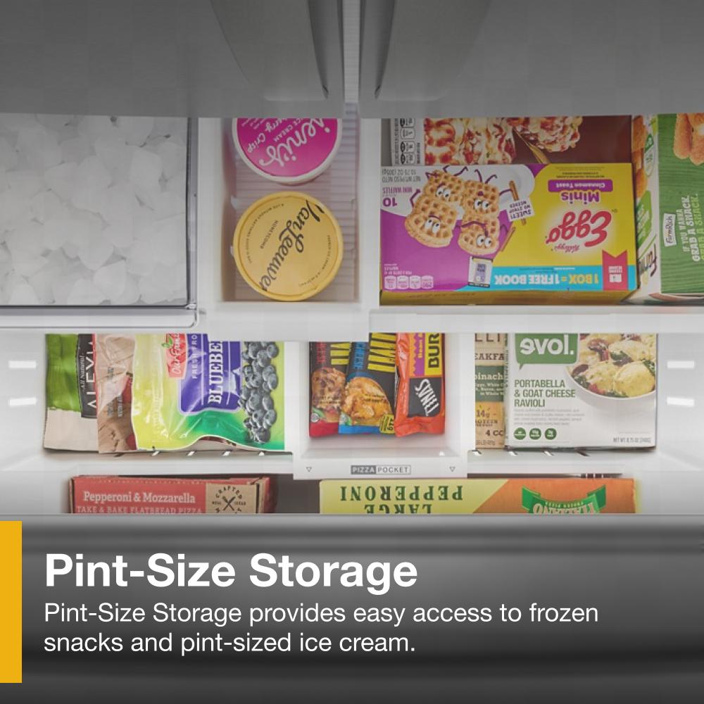 - Pint Size Storage provides easy access to frozen snacks and pint-sized ice cream, so they won't get buried in your freezer.