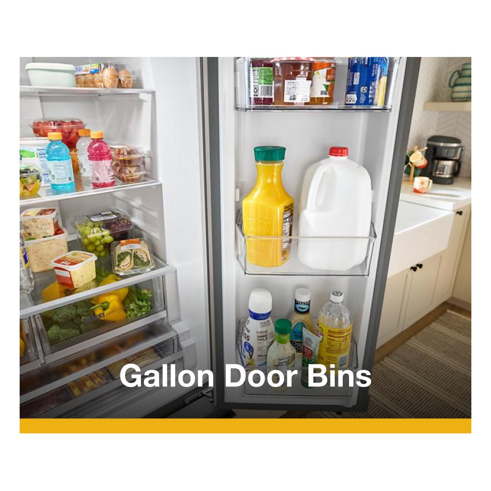 - Free up shelf space with Gallon Door Bins that fit items like milk cartons or tall condiments, so you have easy access to grab everyday items.